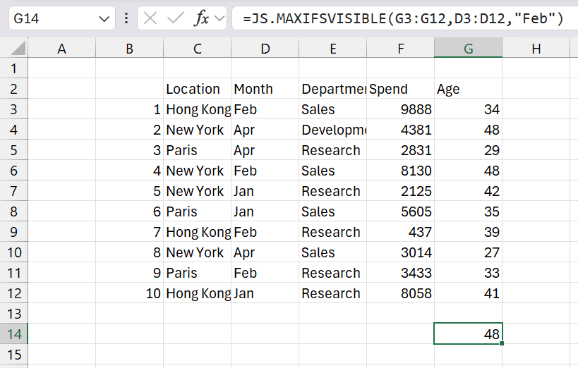 * The built-in MAXIFS function will always include hidden cells.