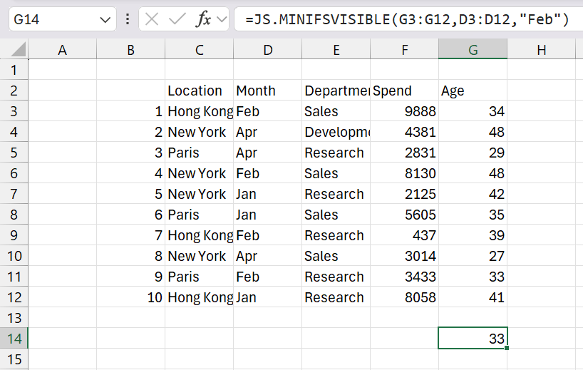 Returns the smallest value from the visible, non blank cells that satisfies multiple conditions.