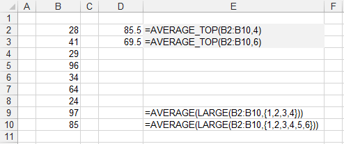 Returns the average of the visible, non blank cells, only considering the top "x" percent.