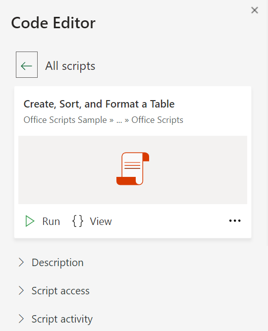 Click on the Office Scripts drop-down to display the Samples.