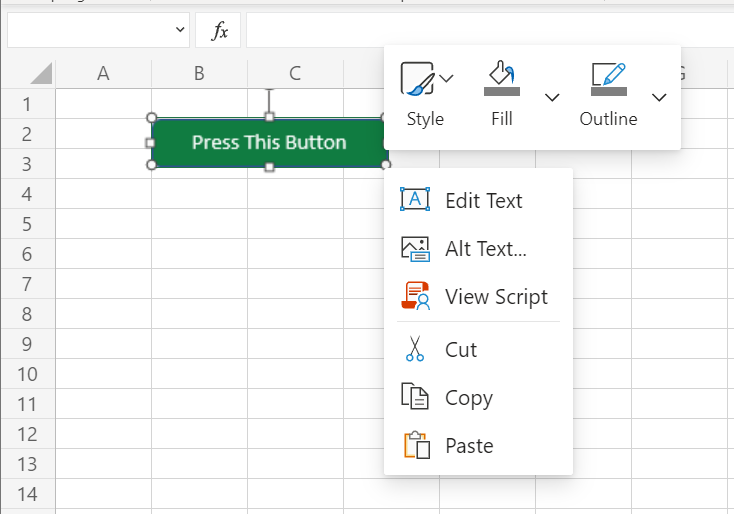 Lets add a button to the active worksheet so this script can be easily run.