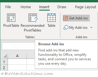 Select the Insert tab and find the Add-ins group. Click "Get Add-ins".