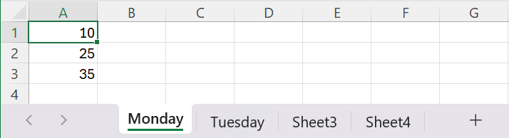 Enter the following values into cells "A1", "A2", "A3", "B1", "B2" and "B3" on the "Monday" tab.