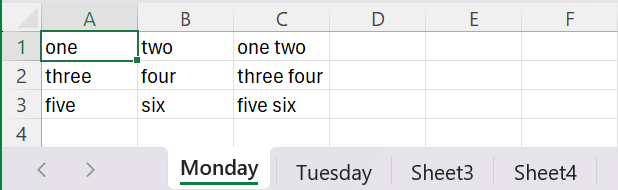 Switch back to Excel and change the name of the "Sheet1" tab to "Monday".