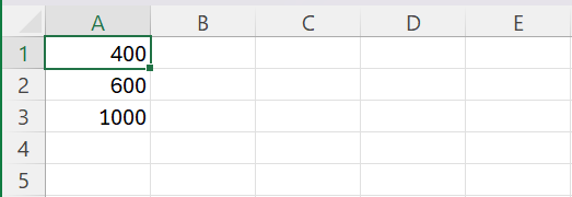 The value of cell "A1" is 10, the value of cell "A2" is 25 and there is a formula in cell "A3" that adds up the values in cells "A1" and "A2".