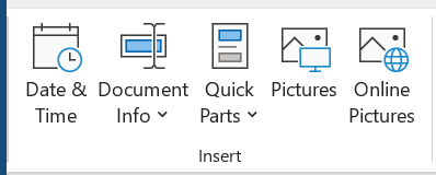 Quick Park - Drop-Down. Insert preformatted text, autotext, document properties and fields anywhere in the document. To reuse content in your documents save it to a Quick Part gallery. The drop-down contains the commands: AutoText, Document Property, Field, Building Blocks, Organizer and Save Selection to Quick Part Gallery.