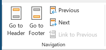 Link to Previous - Link to the previous section to continue using the same header or footer. Turn this feature off to create different a different header or footer for the current selection.