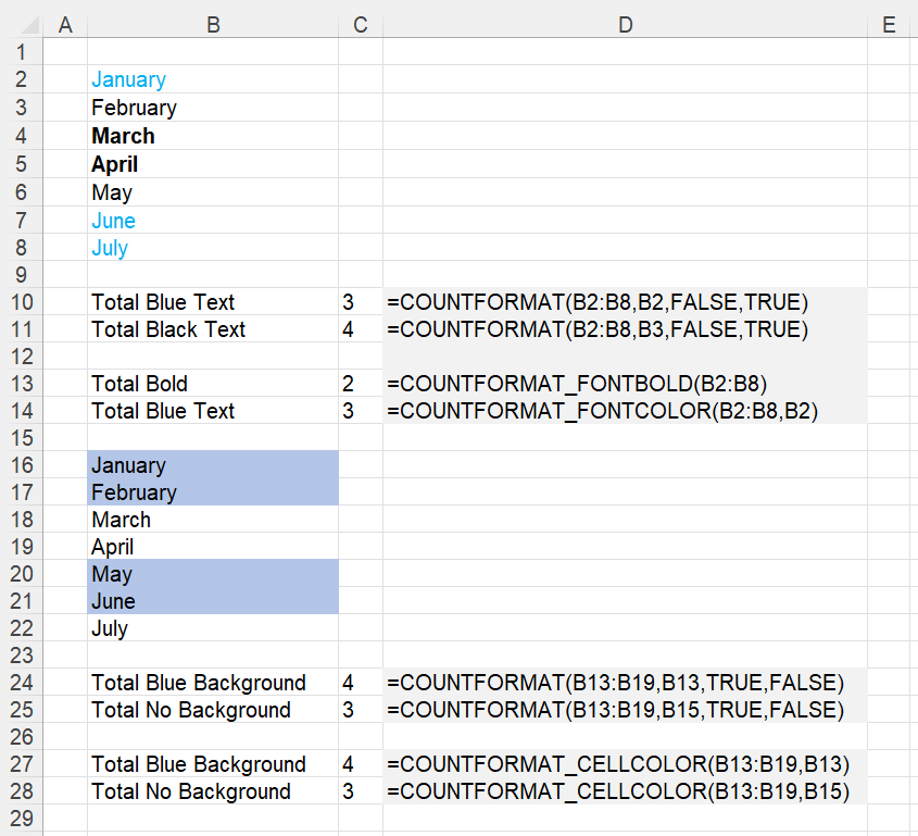 4 Functions that allow you to count different types of formatting.