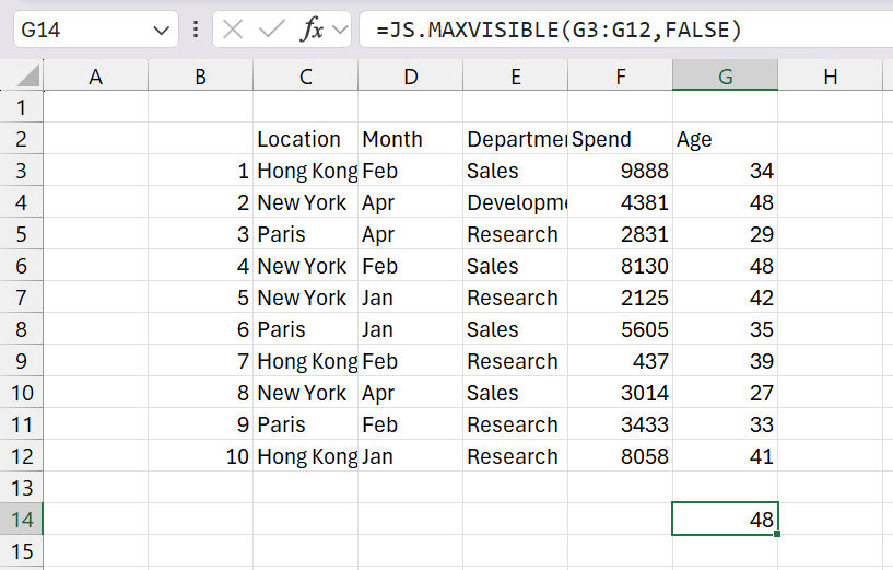 * Similar to the AVERAGEVISIBLE, COUNTVISIBLE, MINVISIBLE and SUMVISIBLE add-in functions.