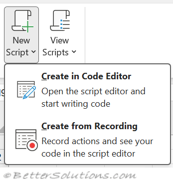 New Script - Drop-Down. Lets you choose how you want to create your script.