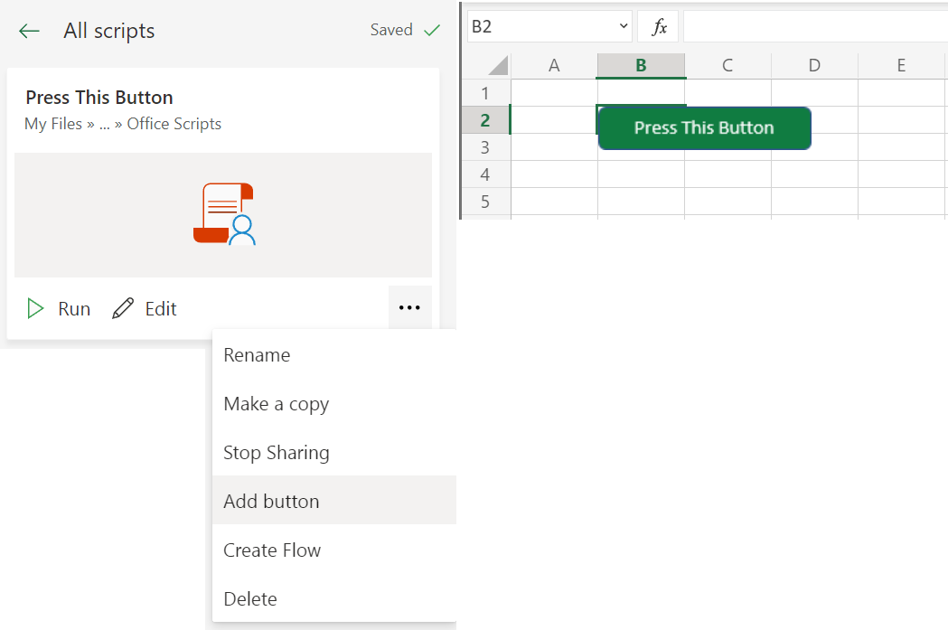 Buttons can be added to worksheets to let users quickly run scripts without having to use the Automate tab.