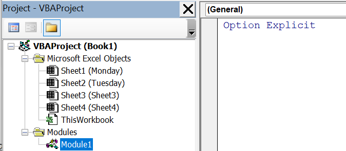 Using the (Alt + F11) key go back to the Visual Basic Editor and see that another sheet has also been added to the VBAProject.