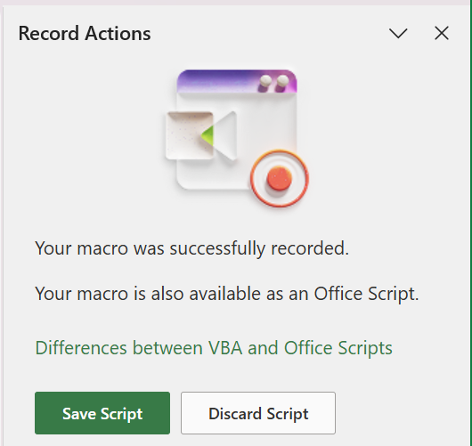 The following task pane will be displayed confirming that the macro has been recorded successfully.